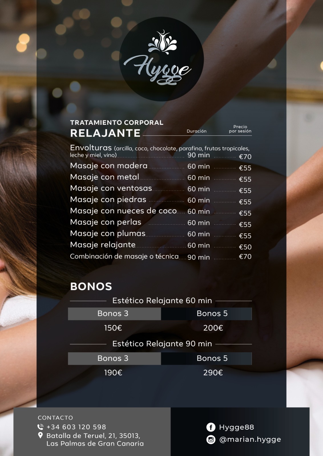 Más que un masaje, es una terapia manual destinada a reconectar con tu bienestar y favorecer la sanación. Se adapta a tus gustos eligiendo entre técnicas como masaje manual, piedras calientes o frías, ventosas, plumas, cuernos de búfalo, maderas, metal crioterápico, nueces de coco o perlas. La sesión de 60 minutos (una técnica) cuesta 55 €; si prefieres la versión de 90 minutos, incluye la combinación de varias técnicas y una exfoliación corporal de regalo por 70 €.